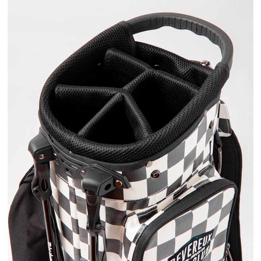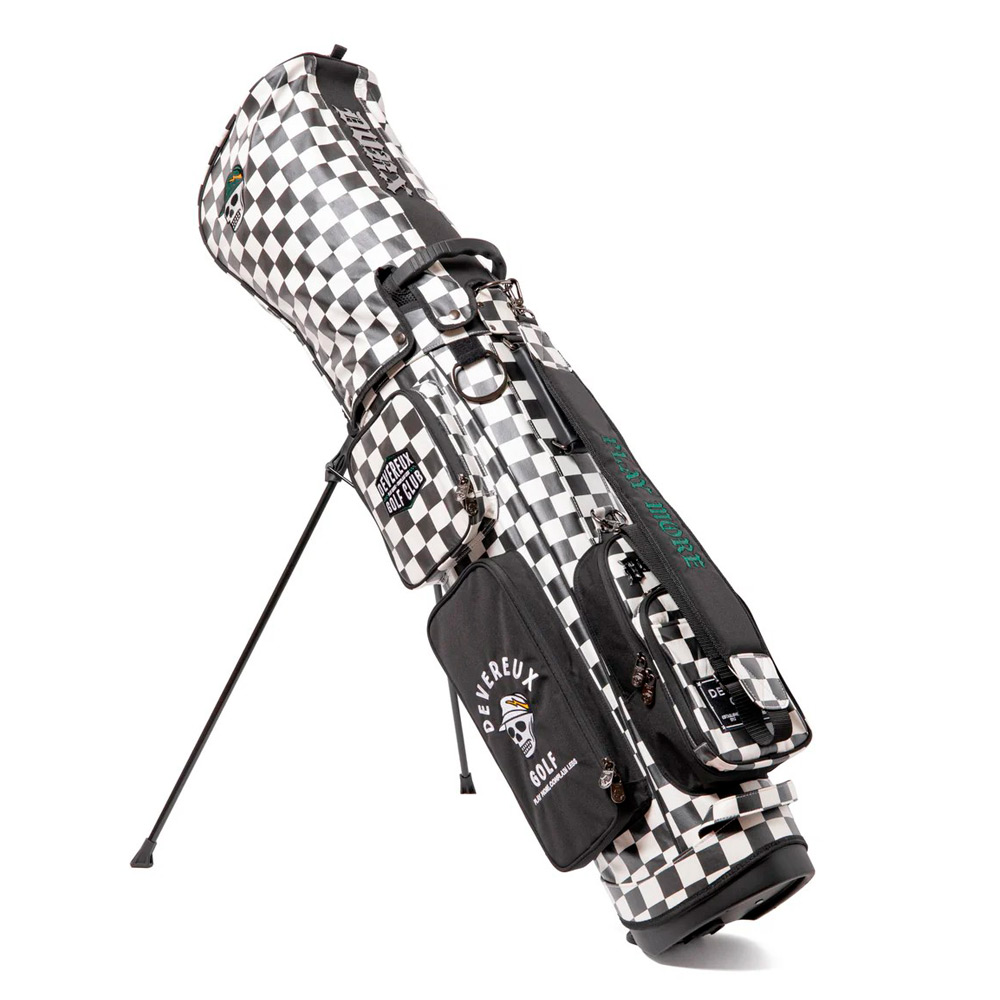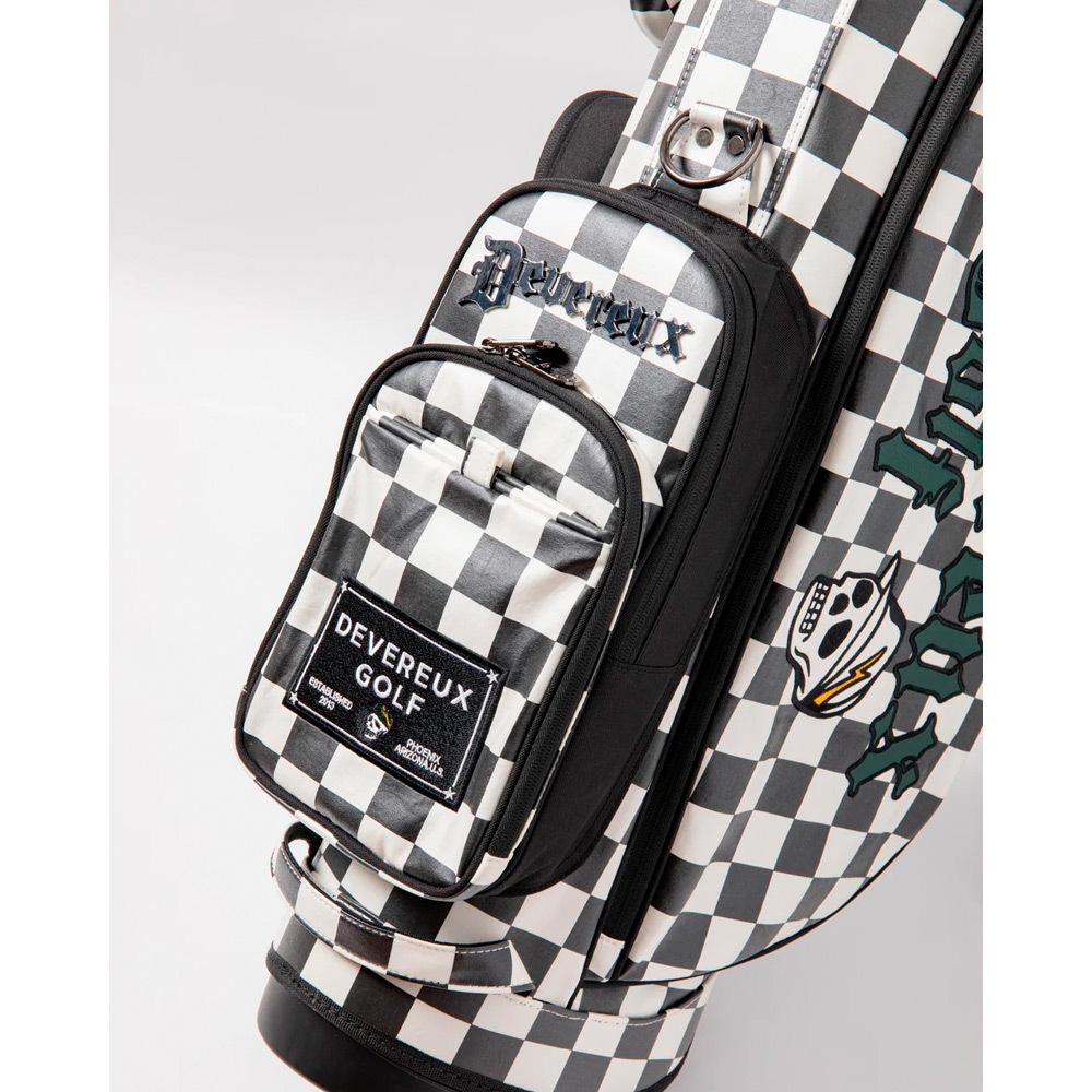 DEVEREUXのアイコンであるチェッカーフラッグを大胆に全面デザインしたキャディバッグ