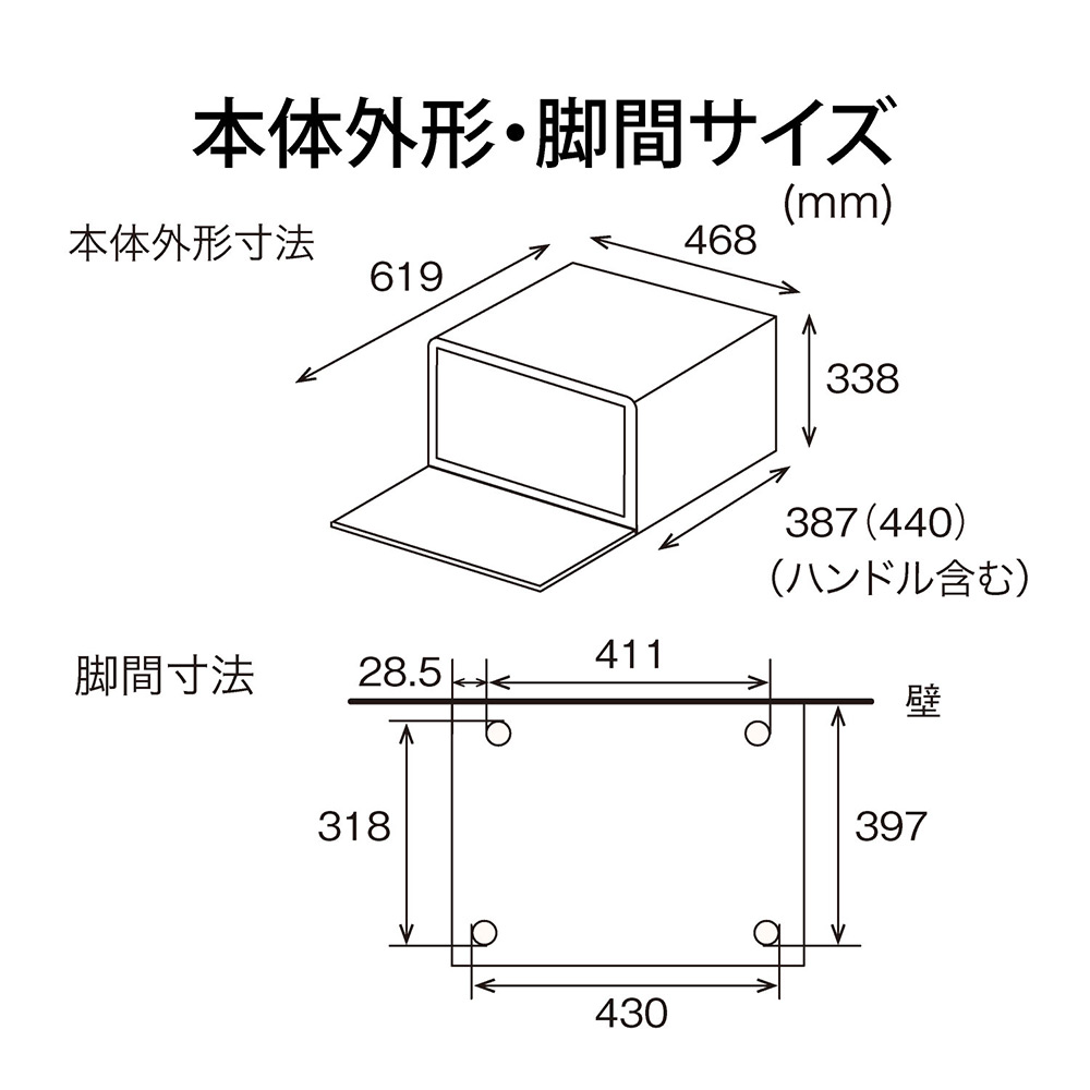 (約)幅468×奥行387(ハンドル含む)×高さ338mm
