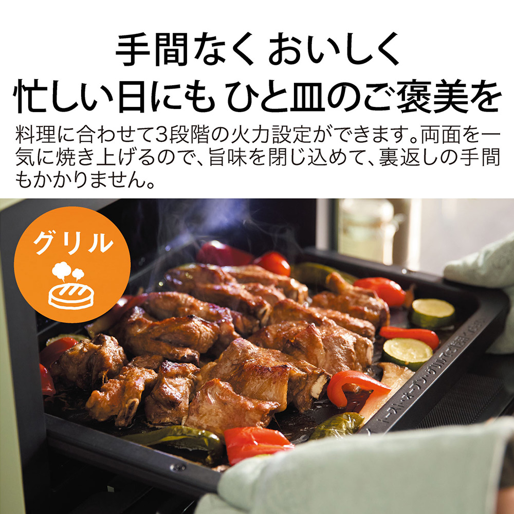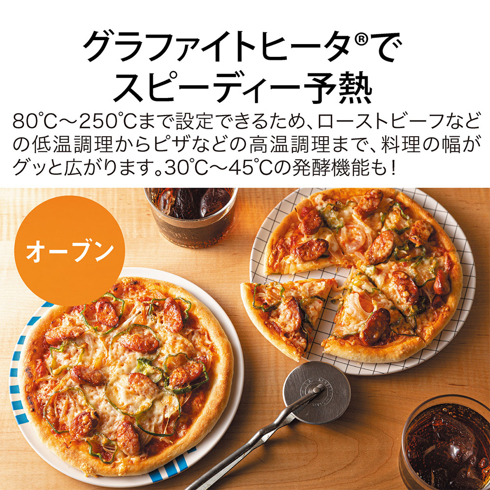 グラファイトヒータ×レンジ加熱のコンビネーションでワンランク上の仕上がりに。