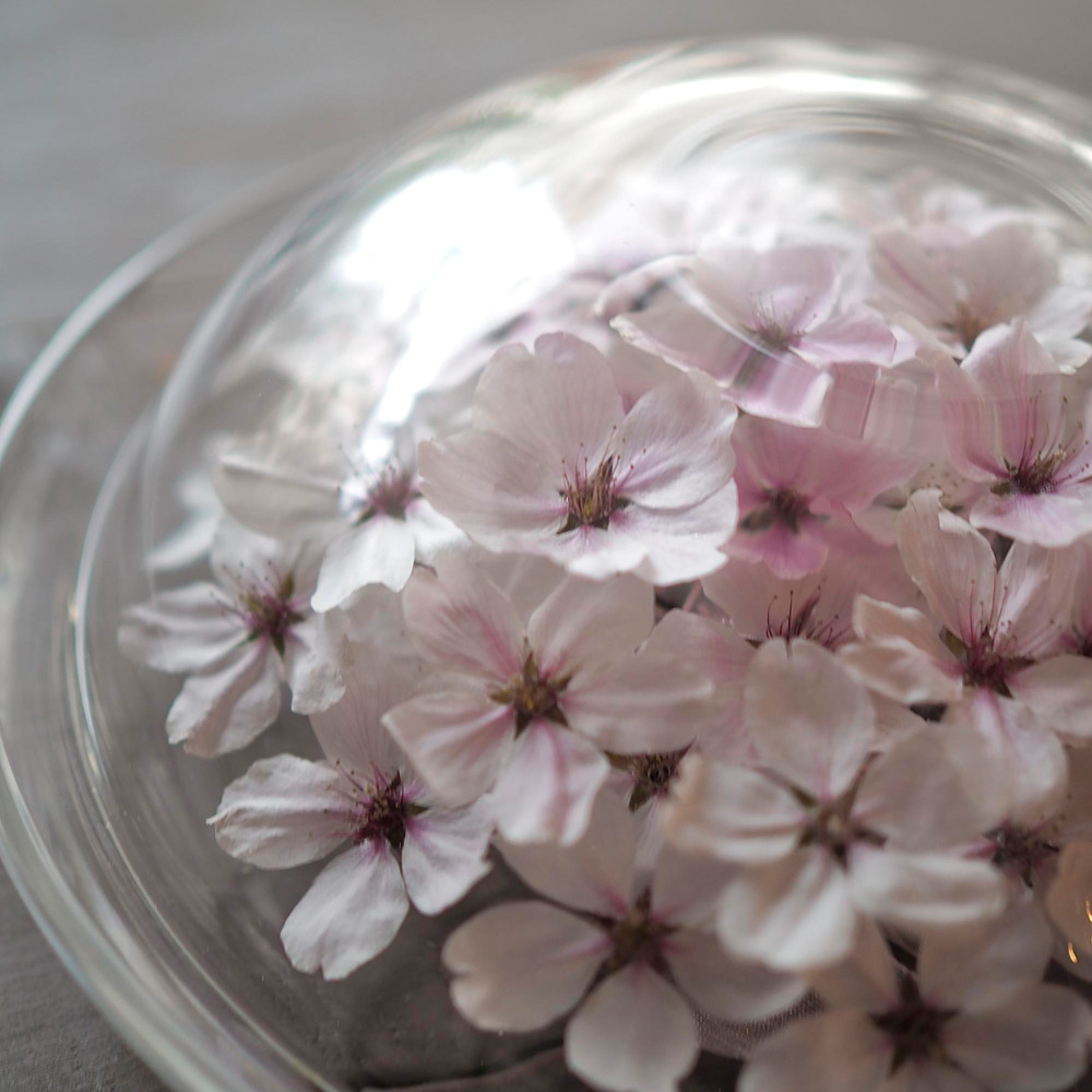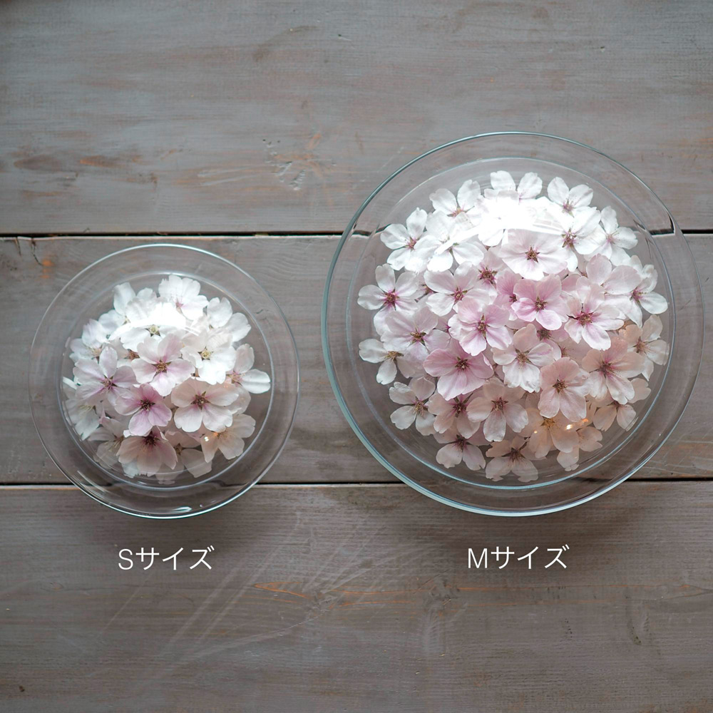 特殊な方法で乾燥させた桜(ソメイヨシノ)を職人の手によりひとつひとつ丁寧にガラスの器に閉じ込めたボトルフラワーです。お皿たてを使わずテーブルのセンターピースとしても飾れます。卒業や入学のシーズン、人生の節目となる記念に最適な贈りものです。
