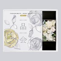 弔事の返礼に適したシックな表紙。こだわりの高島屋オリジナルカタログギフトと日比谷花壇のプリザーブドフラワーアレンジメントを1箱にセットしてお届けします。