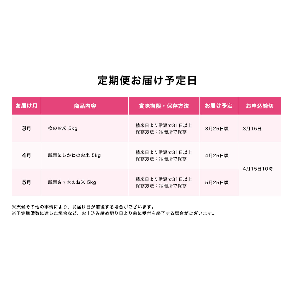 2026年3月→5月お届け(全3回):2026年2月25日(水)→3月15日(日)