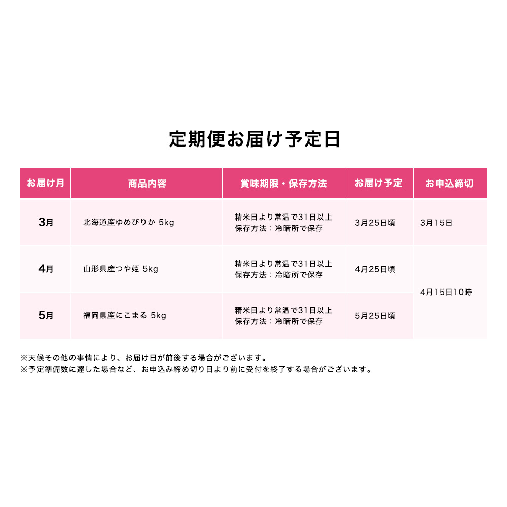 2026年3月→5月お届け(全3回):2026年2月25日(水)→3月15日(日)