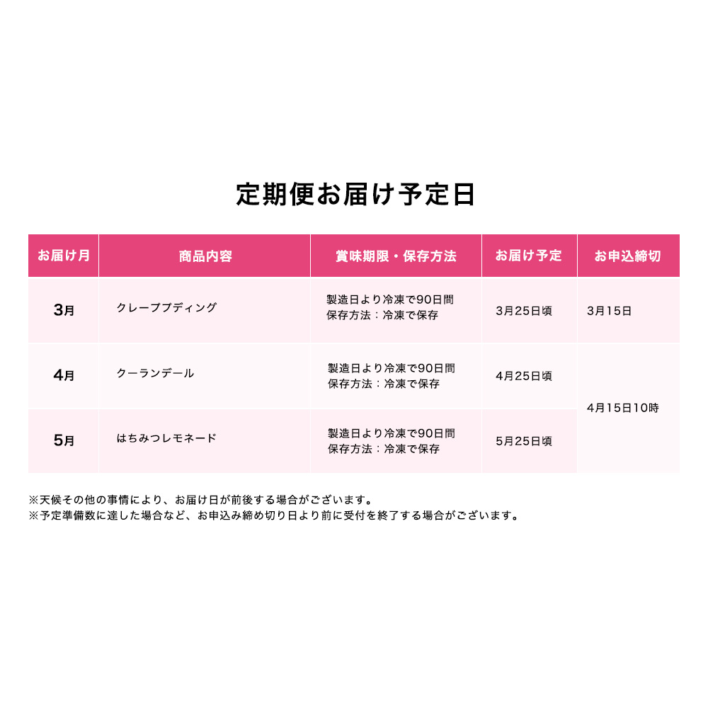 2026年3月→5月お届け(全3回):2026年2月25日(水)→3月15日(日)