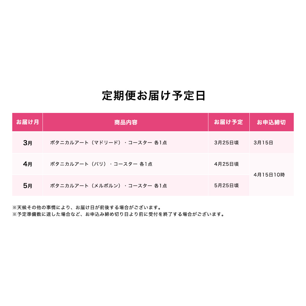【定期便】<ダイヤモンドフィックス>ボタニカルアートパネル&コースター 3カ月コース(3月~5月お届け)
