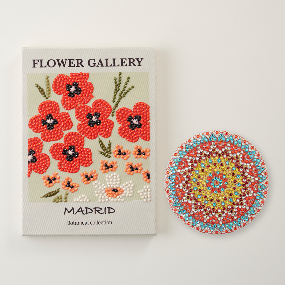 ノリ付きのキャンバスに専用ビーズを貼って仕上げるアート