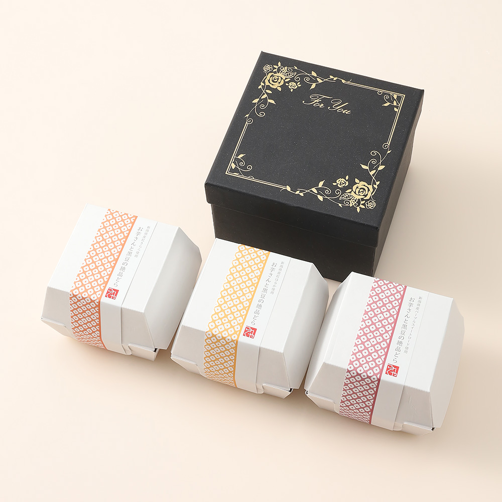 ソープフラワー(正方形)×1箱、お芋さんと黒豆の絶品どら3個(紅はるか・パープルスイートロード・紅きらら×各1個)