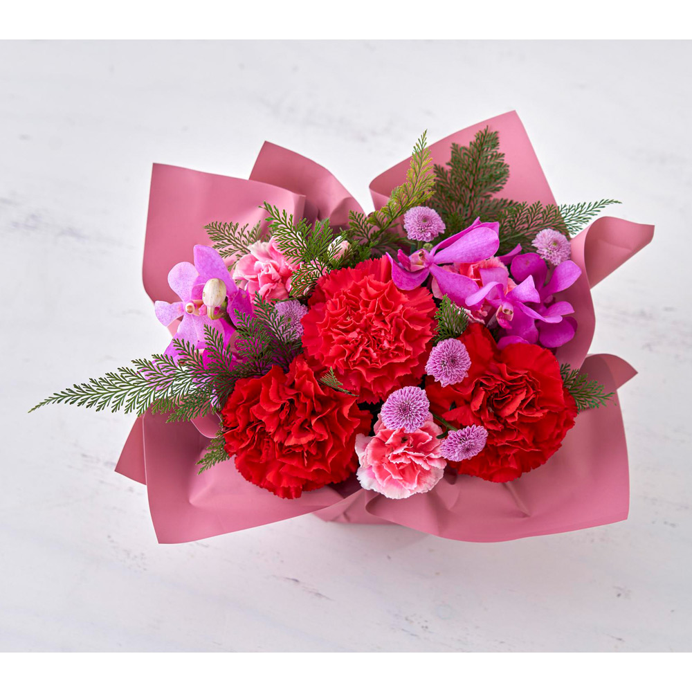 生花:カーネーション、モカラ、スプレーカーネーション、スプレーマム、グリーン