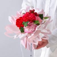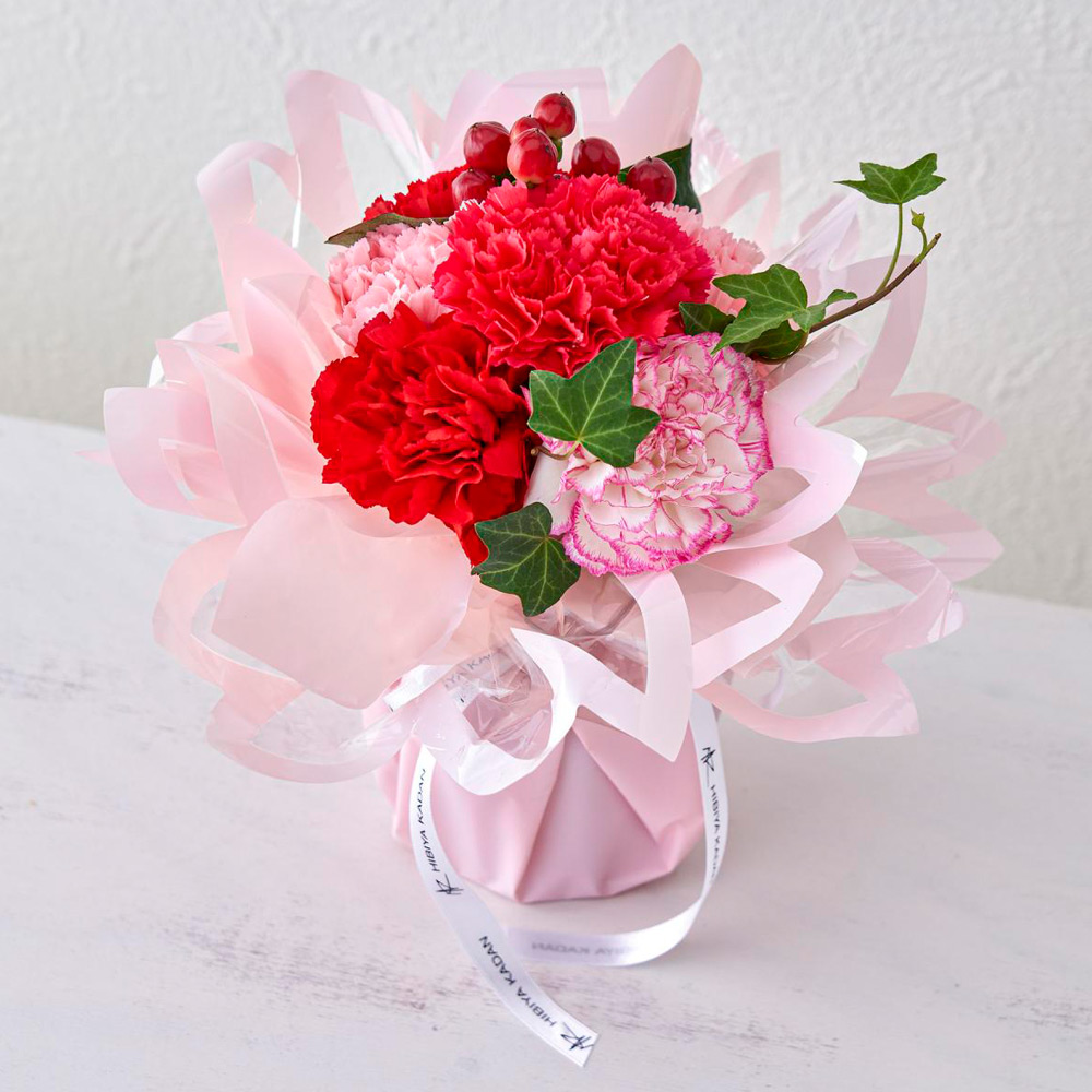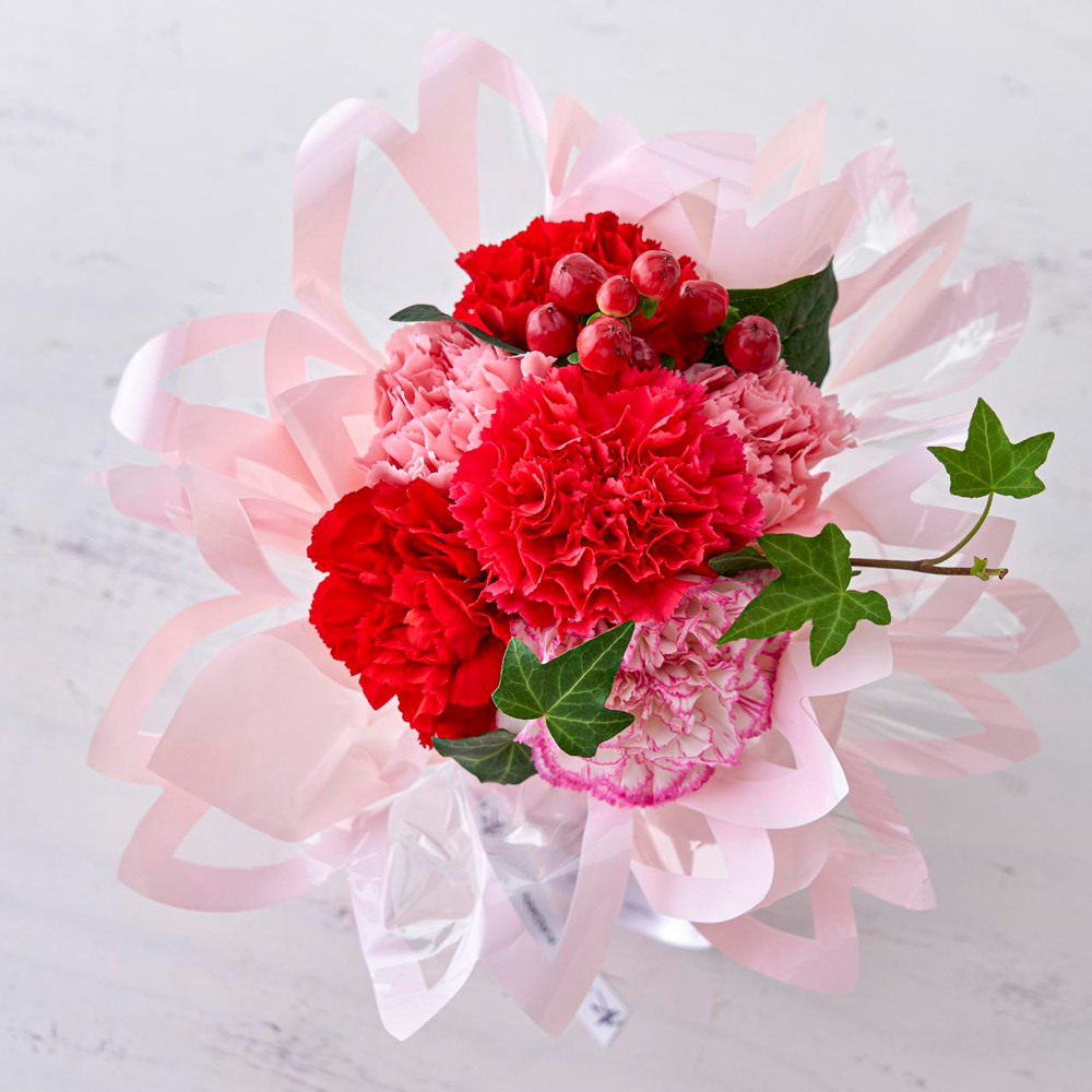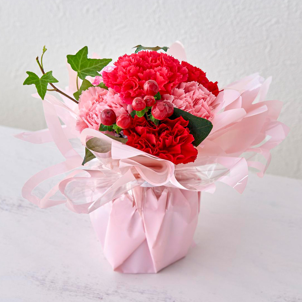 生花:カーネーション、ヒペリカム、グリーン