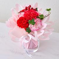 日頃の感謝を込めて、目と心で楽しむ贅沢なひとときを贈りませんか。日比谷花壇のデザイナー西澤真実子氏が手掛けるのは、旬の感性が光る上品なブーケ。優しげなピンクのカーネーションを主役に、花びらを思わせるキュートなラッピングで包み込みました。花瓶不要で「そのまま飾れる」手軽さが、お母さまの毎日にゆとりある癒やしを添えてくれます。添えるのは、GODIVAの「あまおう苺ラングドシャクッキー」。ストロベリーチップを練り込んだクッキーで、奥深い苺の風味を閉じ込めました。ホワイトとミルク、2種のチョコレートとのハーモニーが、至福のティータイムを叶えます。美しい花を愛でながら、とっておきのスイーツを味わう。お母さまへ、そんな優雅なご褒美をお届けします。