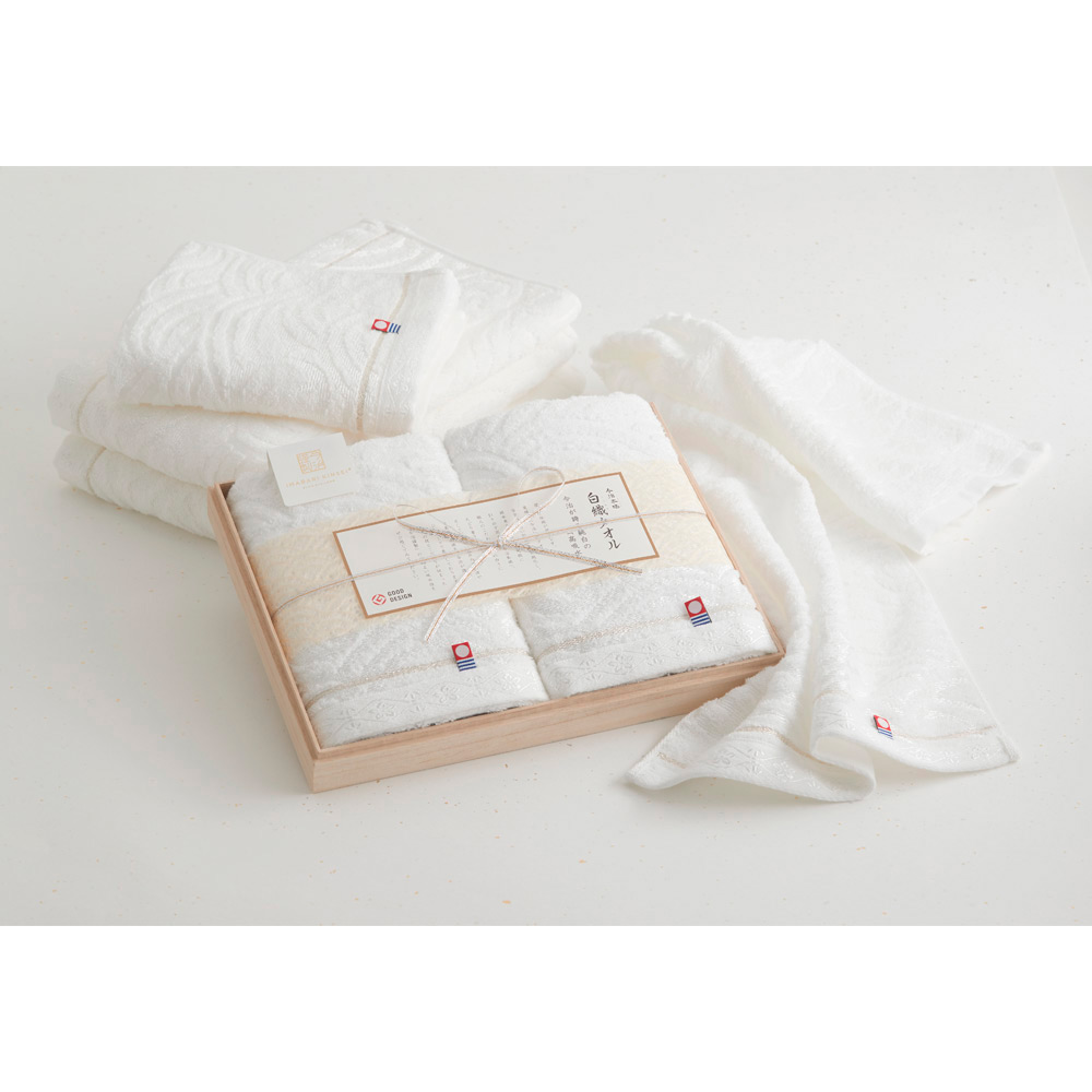国内外の有名ブランド雑貨やファッショングッズや選りすぐりの食材やスイーツなど様々なお客様のお好みにご対応できるカタログギフトです。同じお箱にセットアップされている「白織タオル」は綿本来の吸水性を引き出すまさに匠の技(今治本栖)を施しています。デザインも上品で、美しい瀬戸内の波や来島海峡の渦をジャカードで表現しており、“本物”の白さと、それにかける職人のこだわりが感じられるオススメのタオルです。時代を問わず神聖な色として珍重される「白いタオル」に先様への感謝の思いを込めてお贈りしてはいかがでしょうか。あると便利なウォッシュタオル2枚のセットです。