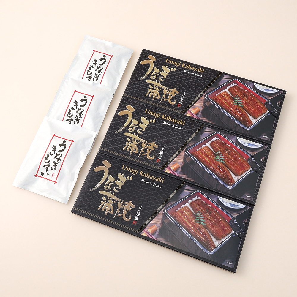 うなぎ蒲焼(120g)×3、たれ(15ml)×3、山椒×3、肝吸い(一人前)×3