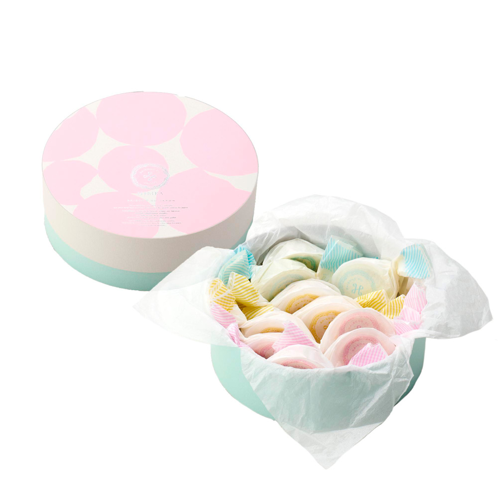 お口に入れるとほろほろ溶ける繊細な口どけのクッキー「ポルボロン」。溶ける前に「ポルボロン」と3回おまじないを唱えると願いが叶う「幸せを呼ぶお菓子」をHIBIKA風にお作りしました。3種の味( アーモンド 、煎茶、いちご)を詰め合わせた春限定のアソートです。