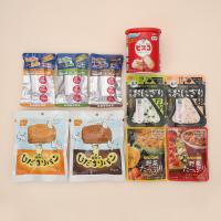 おいしい非常食セット:ビスコ長期保存缶1個、野菜たっぷりトマトのスープ1個、野菜たっぷりかぼちゃのスープ1個、ひだまりパン(プレーン)1個、ひだまりパン(チョコ)1個、携帯おにぎり(わかめ)1個、携帯おにぎり(鮭)1個