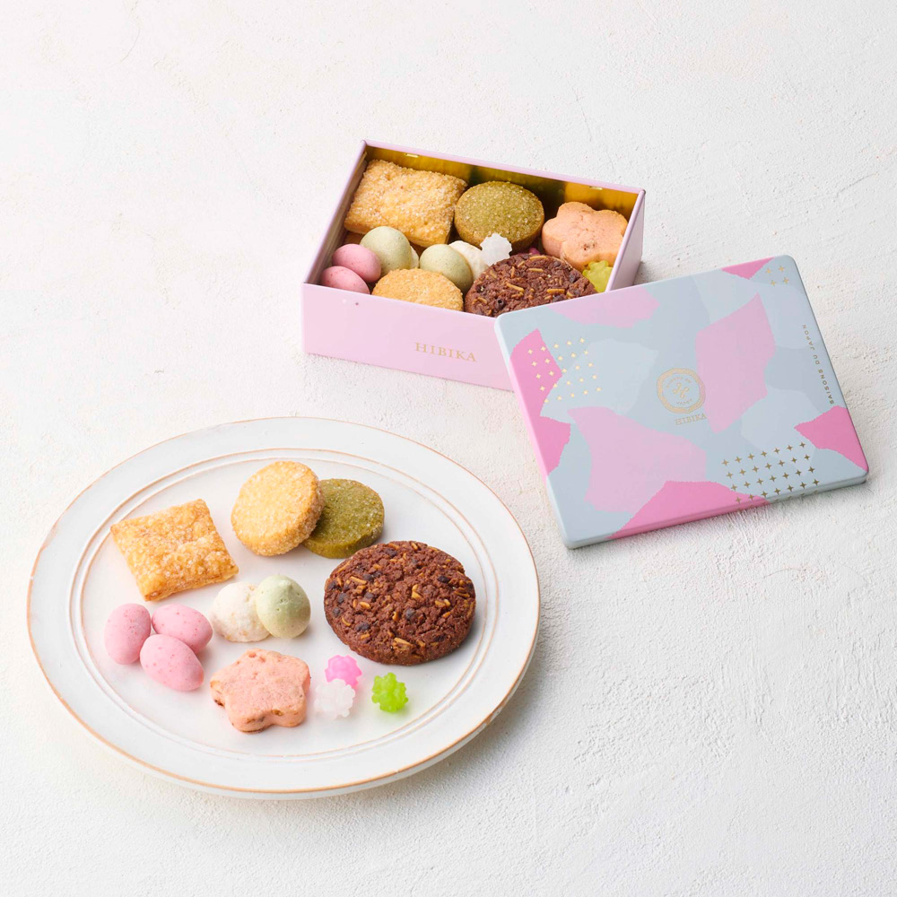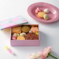 お花をモチーフにしたいちごのサブレ、上品な渋みの煎茶のメレンゲやいちごアーモンドなど、春の味わいが広がるお菓子の詰め合わせです。