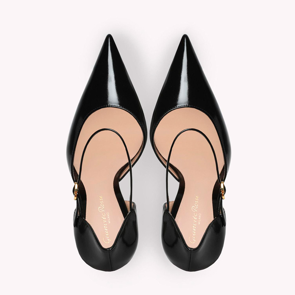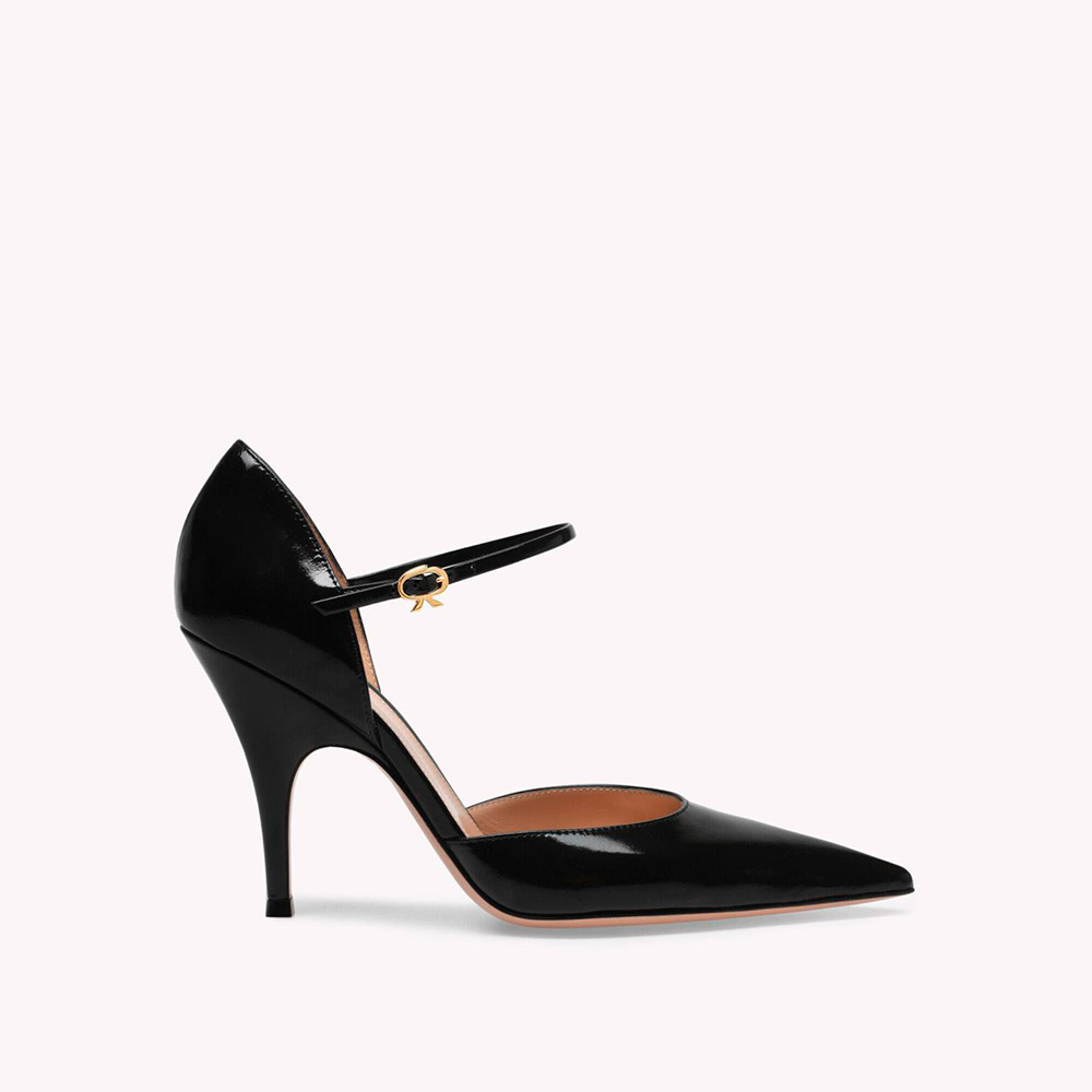 光沢仕上げを施したメゾン独自の柔らかなレザー素材「Nuit」を用いて丹念に作られたポインテッドトゥのパンプス、Sofia D’Orsay。高さ95mmのスティレットヒールを備えています。フロントのメリージェーンストラップにはシグネチャーのリボンバックルがあしらわれています。ハンドメイドで仕上げました。