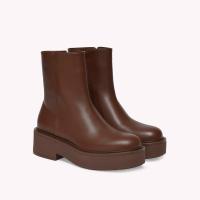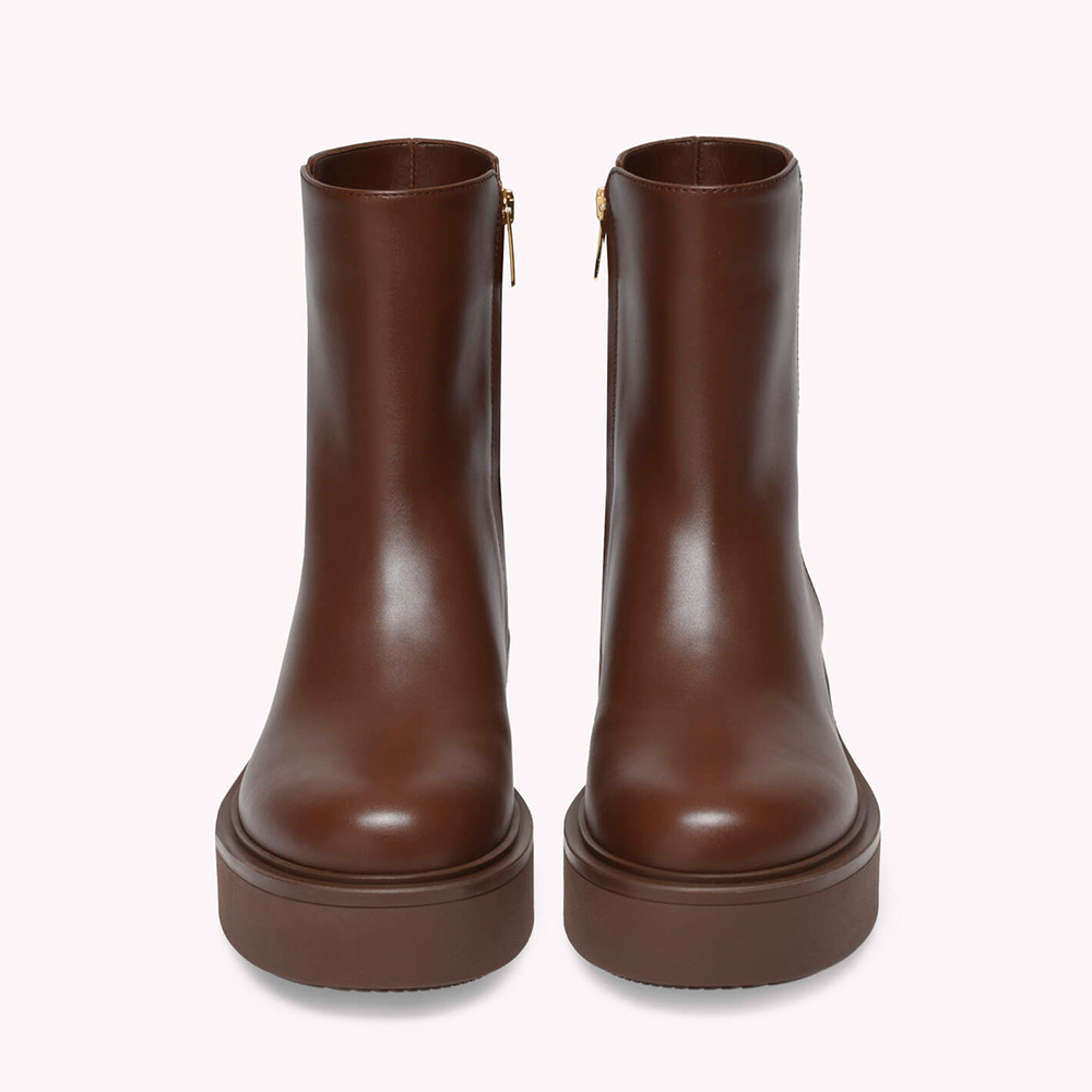 レザーから丹念に作り上げたHiro Bootie。ラウンドトゥのモデルで、内側に脱ぎ履き用のジッパーを備えています。ラバーソールの厚さは、前側が約30mm、後ろ側が約50mm。手作業によって仕上げました。