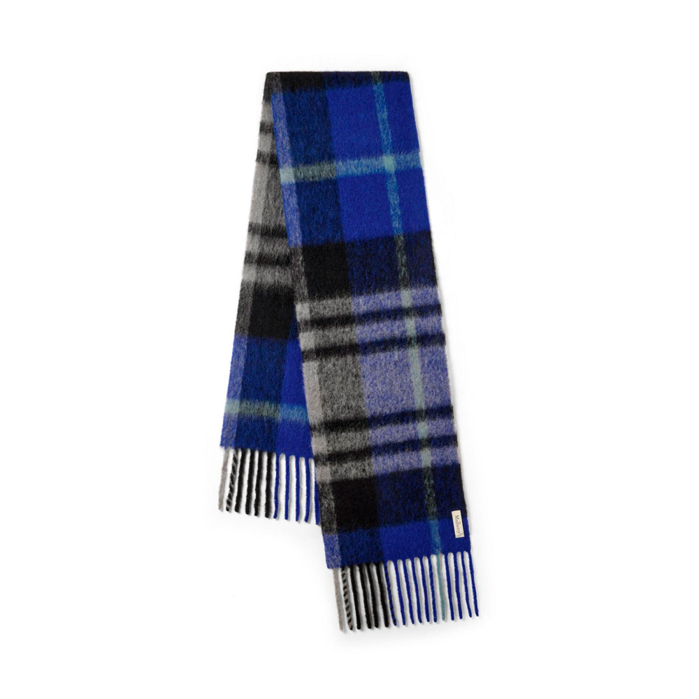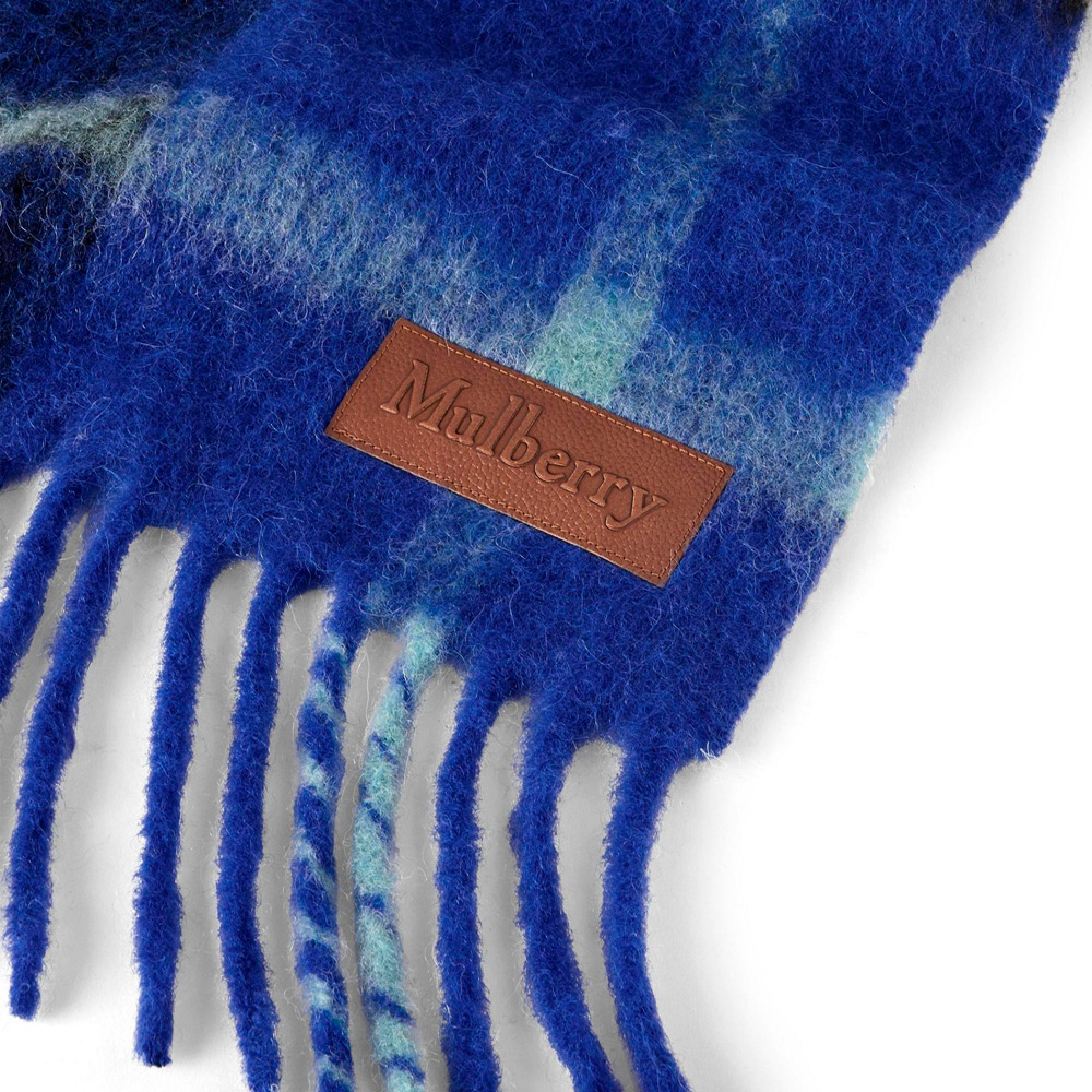 スタイリッシュなカラーバリエーションで展開する、大判のウール混マフラー。エンボス加工でマルベリーロゴをあしらったレザーパッチが付いています。