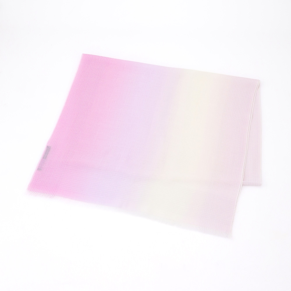 生地を織り上げた後に、3段階に分けて染めることで奥深いグラデーションを表現したストール。カシミヤ混でしっとりとした肌触りです。UV加工を施しており、日差しが気になる季節にも活躍。冷房対策としてもお使いいただけます。