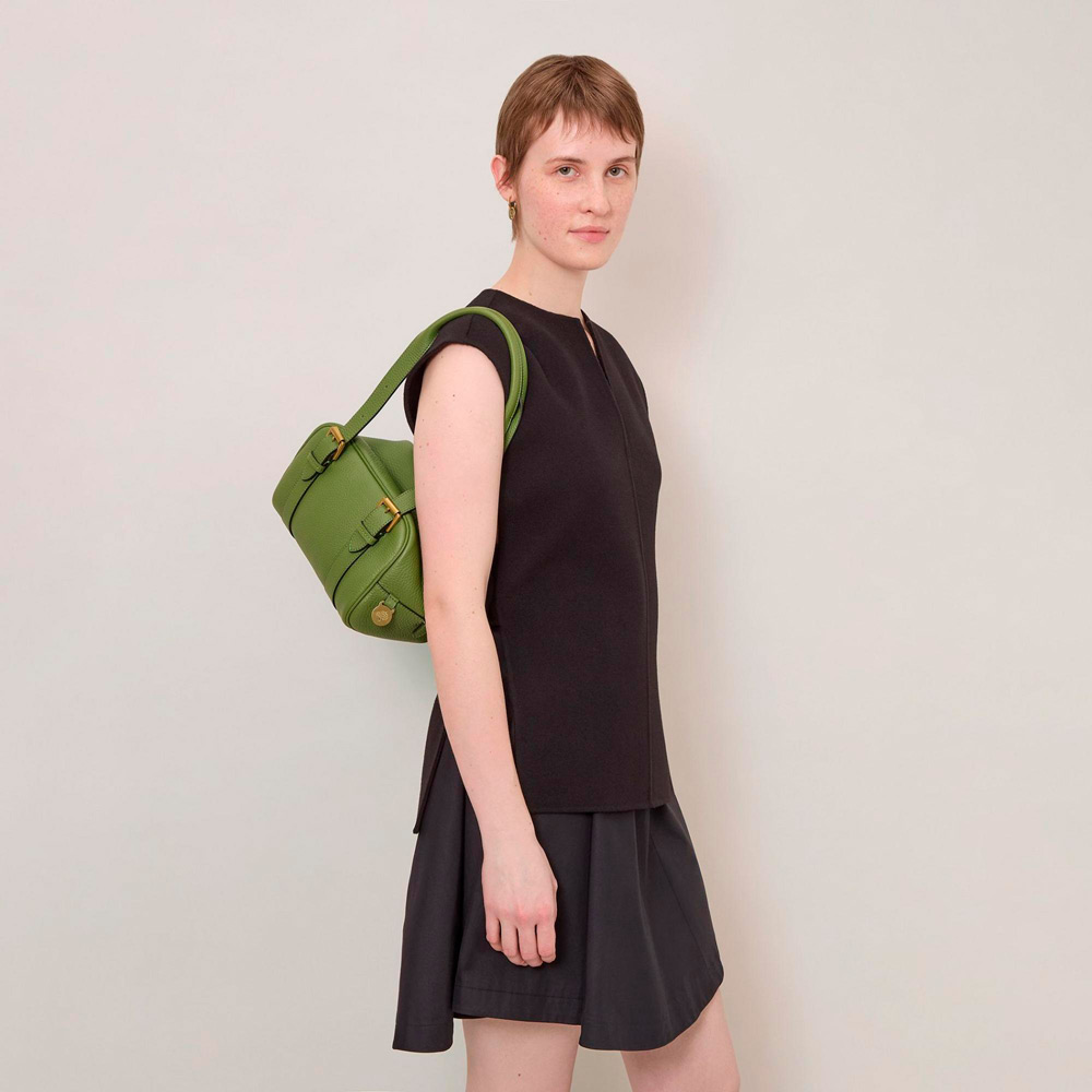 アーカイブモデルのメイベルに着想を得てデザインされたスモール ボストン。日々の必需品がすっきり収まり、シックなデザインがスタイリッシュに映えるバッグです。馬具をモチーフにしたモダンなデザインのバックル、開閉部のジッパー、マルベリーツリーのメダリオンなどディテールにもこだわりが光り、街歩きの強い味方として活躍します。