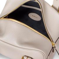 アーカイブモデルのメイベルに着想を得てデザインされたスモール ボストン。日々の必需品がすっきり収まり、シックなデザインがスタイリッシュに映えるバッグです。馬具をモチーフにしたモダンなデザインのバックル、開閉部のジッパー、マルベリーツリーのメダリオンなどディテールにもこだわりが光り、街歩きの強い味方として活躍します。