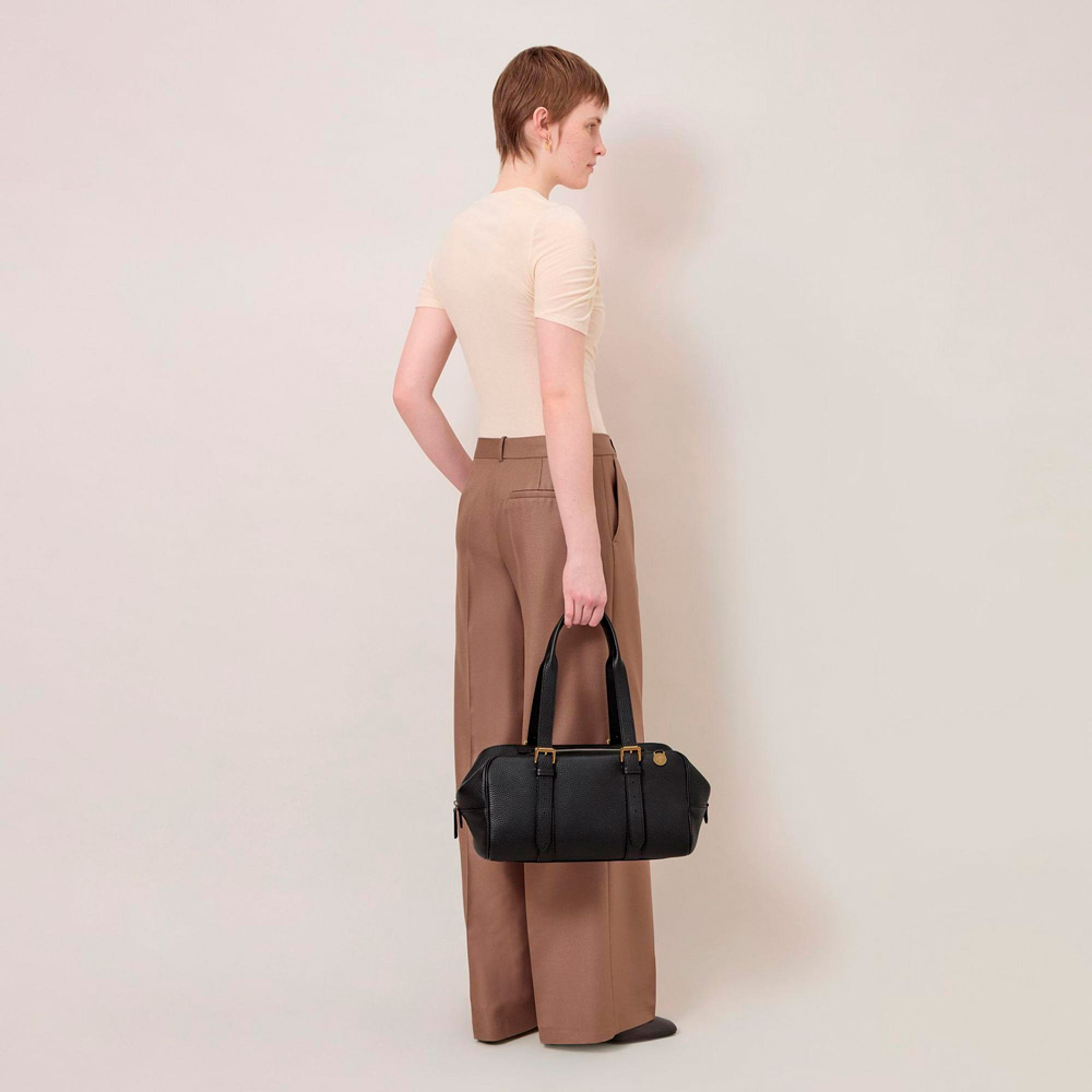 アーカイブモデルのメイベルに着想を得てデザインされたボストン。日々の必需品がすっきり収まり、シックなデザインがスタイリッシュに映えるバッグです。馬具をモチーフにしたモダンなデザインのバックル、開閉部のジッパー、マルベリーツリーのメダリオンなど、ディテールにもこだわりが光る作品。収納力に優れ、街歩きの強い味方として活躍します。