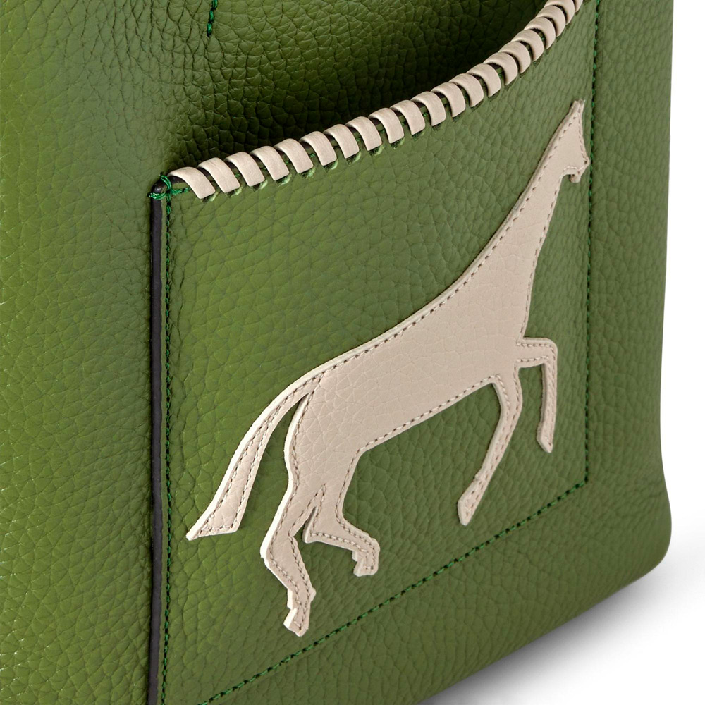 外側に、チョークホース(白馬の地上絵)のアップリケとコントラストカラーのウーブントリムを施したスリップポケット1つ