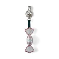 丁寧に仕上げられたキャンディ モチーフのキーリング。シルバー仕上げのメタルパーツに、ダブルリングとスナップフックが付いています。