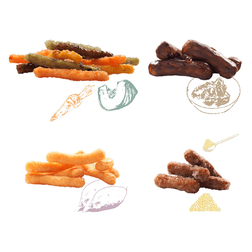 やさいかりんとう×1、さつまいもかりんとう×1、沖縄黒糖かりんとう×1、ざらめかりんとう×1、わさびかりんとう×1、塩キャラメルかりんとう×1、ねぎ味噌かりんとう×1、チーズかりんとう×1