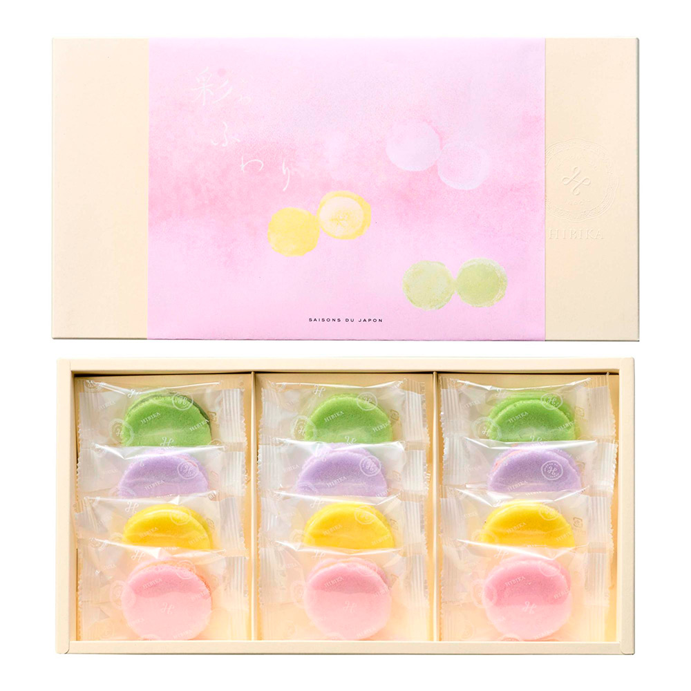 春らしい彩りのふやきに4種のクリームをサンドしたふわりと軽い食感のお菓子です。サクサクしたふやきの食感とクリームのやさしい口どけをお楽しみください。