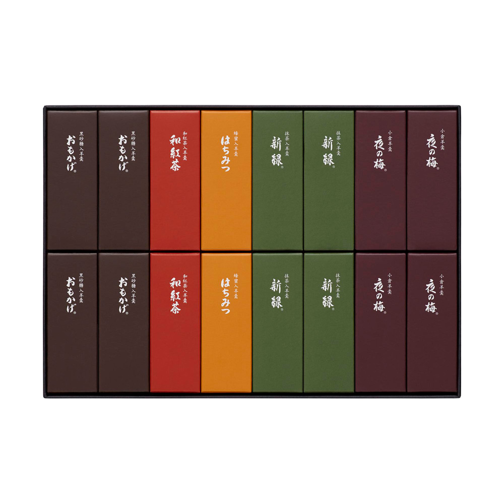 小倉羊羹 夜の梅・黒砂糖入羊羹 おもかげ・抹茶入羊羹 新緑 各50g×4、蜂蜜入羊羹 はちみつ・和紅茶入羊羹 和紅茶 各50g×2