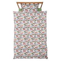 さまざまなポーズの犬たちが並ぶ、楽しい雰囲気の総柄デザイン。賑やかさの中にも落ち着きがあり、大人も取り入れやすい仕上がりです。犬好きの方はもちろん、寝室に遊び心をプラスしたい方にもおすすめ。眺めているだけでクスッと笑顔になれる、やさしい存在感の一枚です。8カ所スナップボタン付。