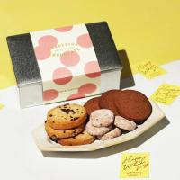 ドミニカ共和国産カカオ70%のチョコレートを使用したチョコレートクッキー、チョコレートチップをシンプルなバタークッキーに散りばめたチョコチップクッキー、チョコレートチップとラズベリーを練り込んだ期間限定のカカオー&ベリーズクッキーが入っています。仕上げにストロベリーパウダーを重ね、やさしい甘酸っぱさが芳醇なカカオの風味を一層引き立てます。3種類の美味しさをお楽しみください。