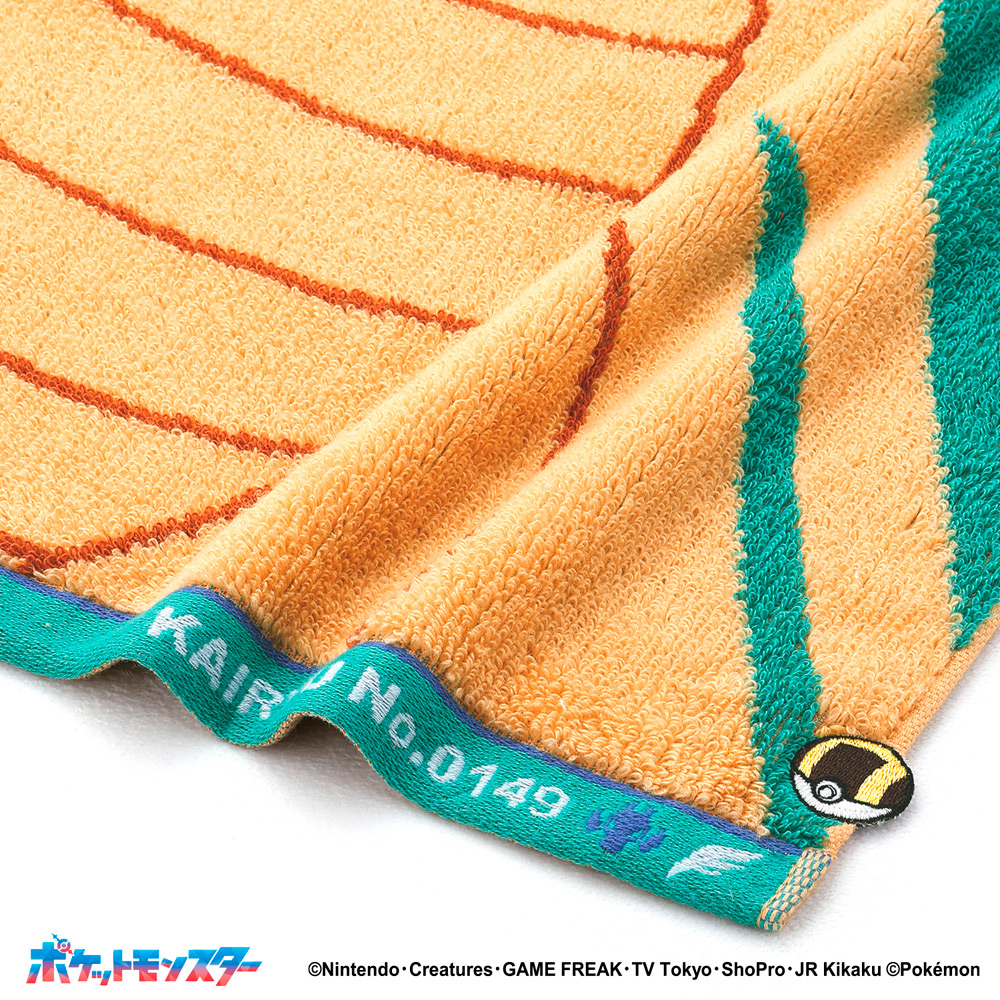カビゴンとカイリューが大きく描かれた迫力満点なフェイスタオルの2枚セットです。鮮やかなカラーリングとダイナミックなデザインは見るだけで元気がでるアイテムです。右下にあしらわれたアップリケ刺しゅうもポケモンごとに違ったデザインになっています。ふわふわした無撚糸で触りごごちの良くボリュームがあり、ご自分用はもちろん、ご友人へのプレゼントなどにもおすすめです。