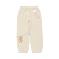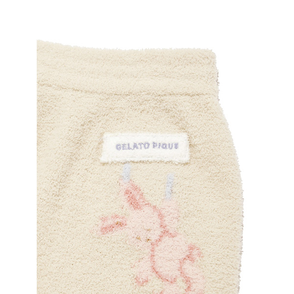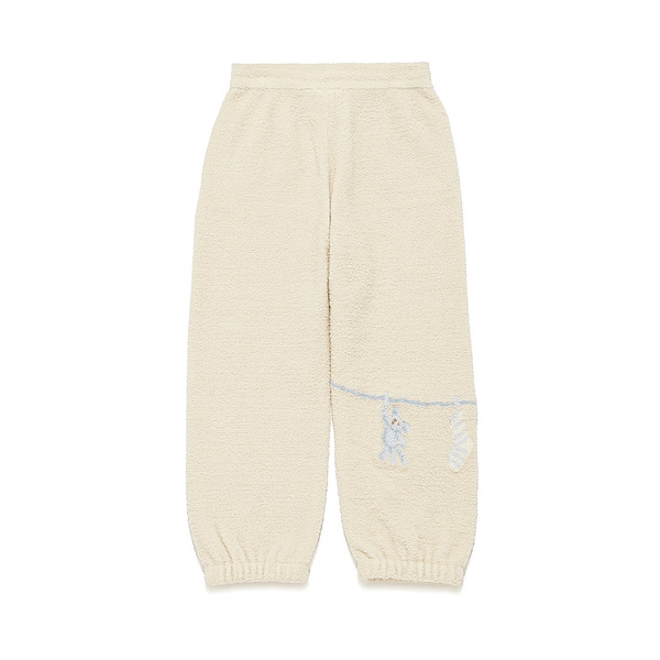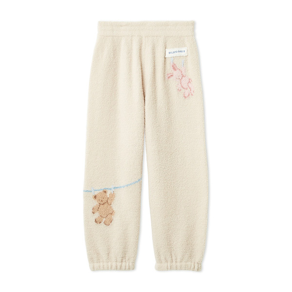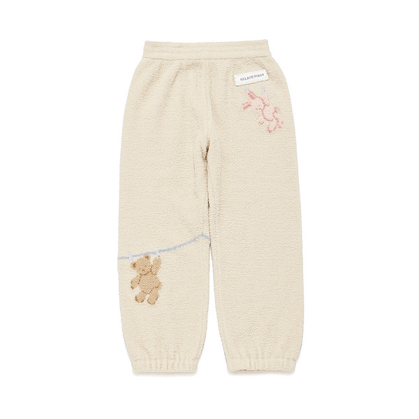 [Fabric]AIRY MOCO(エアリーモコ)・・・空気を身にまとっているような軽い着心地と、ライトな肌触りが魅力の‘エアリーモコ’、通称エアリーモコ。ふかふかに焼き上げたスポンジのような風合いと、さらりとしたタッチで、ジェラート ピケのニットシリーズでは最も軽量。季節を問わず、爽やかな着心地がお好みの方にオススメです。[Design/Styling]シャボンの香りが漂ってきそうな、春のピースフルなお洗濯タイム。ウォッシングアニマルシリーズです。洗濯紐に留まったぬいぐるみたちの絵柄を、腰元や裾にジャガードであしらった‘エアリーモコ’素材のKIDSロングパンツ。裾にゴムを入れているので動きやすく、遊んでいても裾のバタつきが気になりにくいシルエットです。左腰にあしらったロゴ入りのモコテープも、ふんわりとした素材感を引き立てる演出。色はベージュとラベンダーをご用意しました。同シリーズのパーカやカットソーシリーズ、雑貨類と合わせたり、BABYサイズとのリンク・コーディネートもおすすめです。