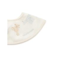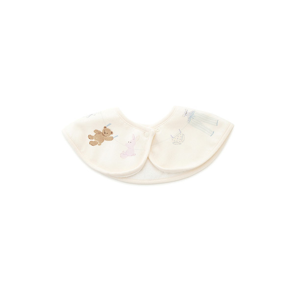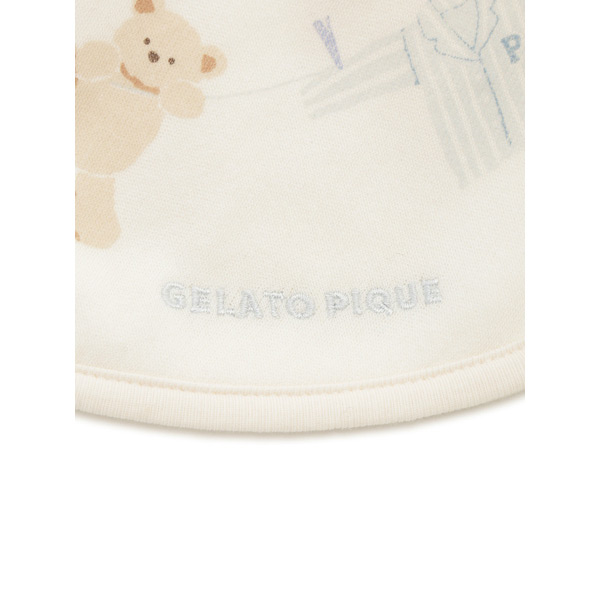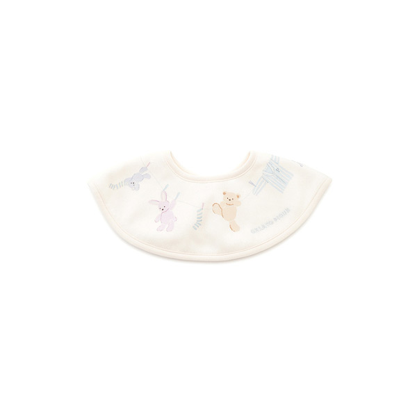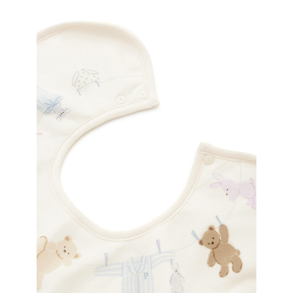 Fabric]適度な厚みと柔らかさのあるエイトロックのニット素材を使用しました。[Design/Styling]シャボンの香りが漂ってきそうな、春のピースフルなお洗濯タイム。ウォッシングアニマルのルームウェアに合わせてお楽しみいただける、BABY雑貨シリーズです。洗濯紐に留まったぬいぐるみたちの絵柄を、首元にぐるりとプリントしたBABYスタイ。ふんわりとした肌触りのエイトロック素材を使用し、柔らかな付け心地に仕上げました。フロントの右下には、ワンポイントでブランドロゴも入っています。色は春らしい爽やかな色合いのオフホワイトとブルーの2色展開。同シリーズのルームウェアや雑貨と合わせたり、ギフトにもおすすめです。