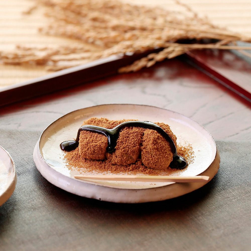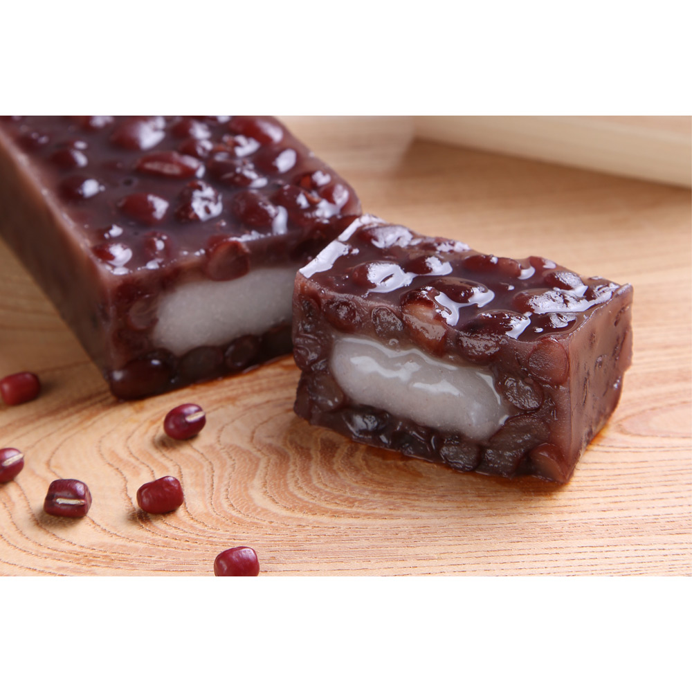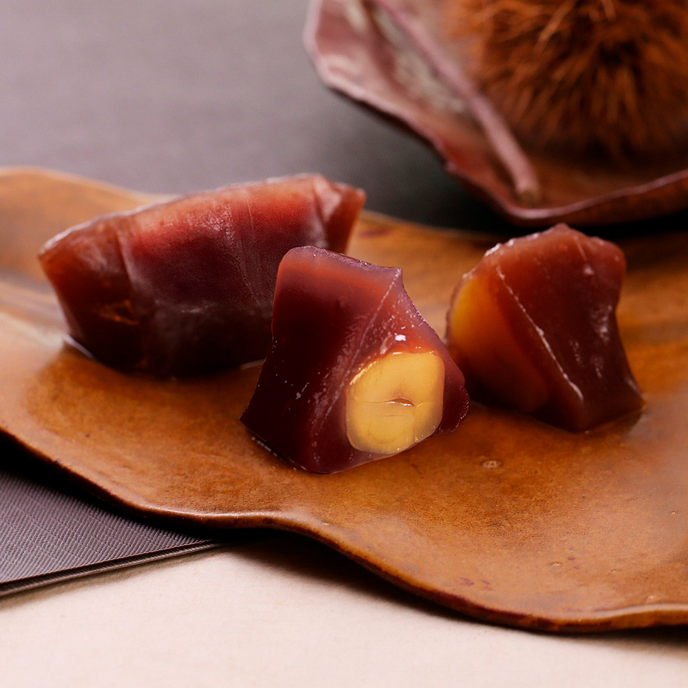 [あも]味と香りがよく、皮が薄くて口当たりのよい「丹波大納言小豆」。その小豆をじっくりと時間をかけて糖蜜をふくませ、手炊きをしています。羽二重餅はとろけるようにやわらか。小豆はやさしくほどけます。[栗山家]もっちり栗蒸し羊羹。小豆の煮汁を加え、丁寧につくったこし餡の羊羹生地は風味豊か。中には栗の甘露煮をまるごと一粒入れました。[閼伽井(黒蜜きなこ)]コシのあるしっかりとした羽二重餅に滋賀県産の大豆を使用したきな粉をまぶします。黒蜜をかけてどうぞ。[標野]自家梅蔵で熟成させた甘い香りを放つ城州白梅に、赤色が鮮やかな梅の品種「露茜(つゆあかね)」を加え、寒天でとどめました。