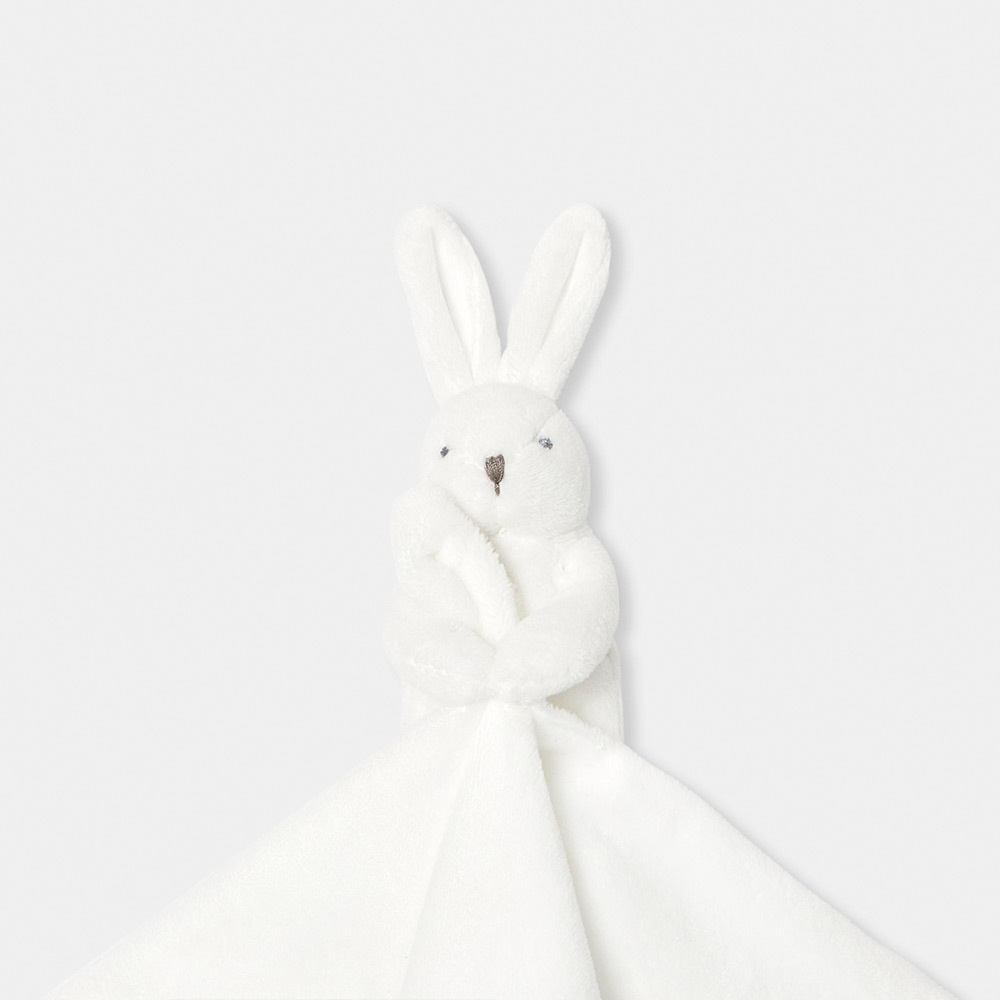 出産祝いのギフトにもおすすめなタオルをキャッチした愛らしいウサギのぬいぐるみセット。赤ちゃんもにぎりやすいベルベット調生地の柔らかい肌触りです。お出掛けにもお休み時にも赤ちゃんに寄り添います。