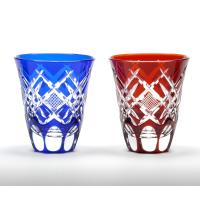 江戸切子の伝統文様「魚子文様」を矢来文様で形作った菱形で囲ったデザインに仕上げたグラスです。
