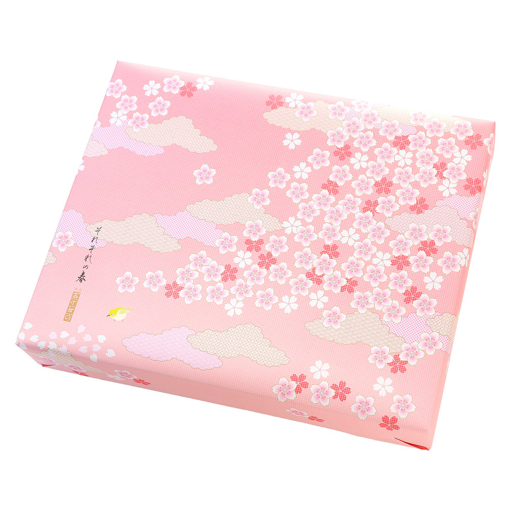 美味しさに定評のある宮城県産もち米「みやこがねもち」を使用しております。香ばしい海苔や胡麻、春を感じる桜のざらめ味なども入った味わい豊かな9種11個入りの詰め合わせです。満開の桜舞う美しいパッケージは季節の贈りものにもぴったりです。