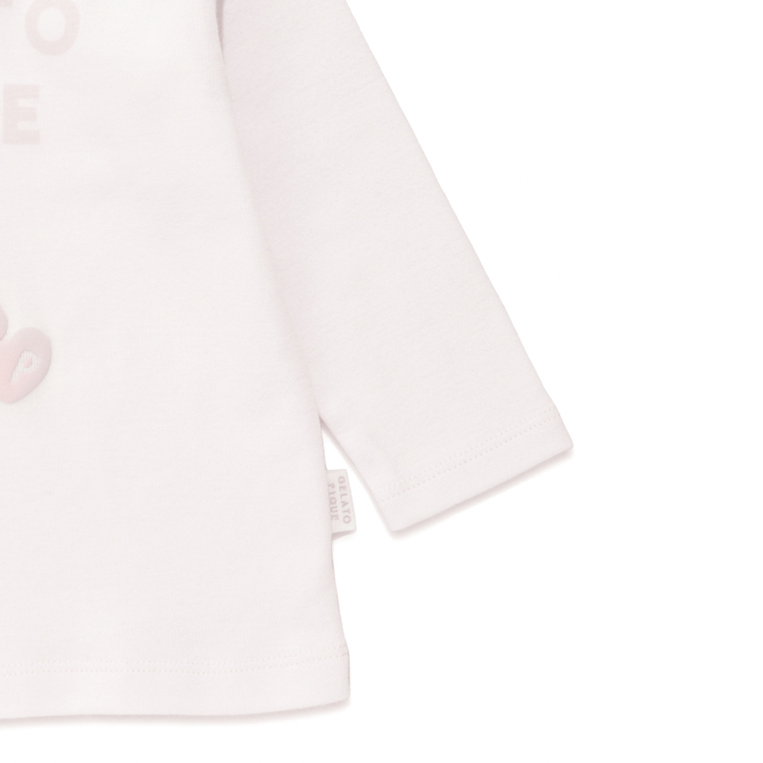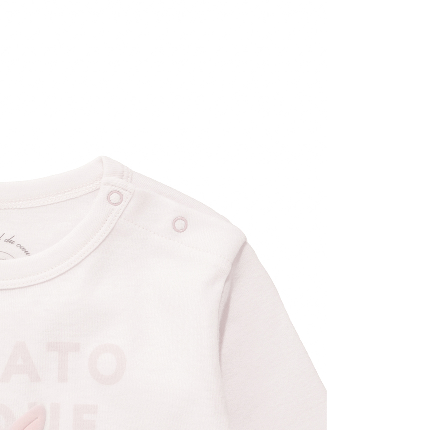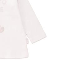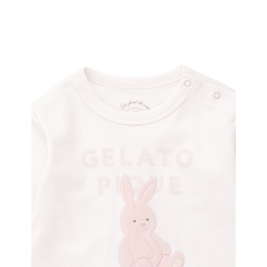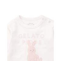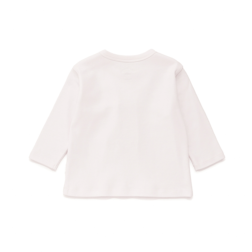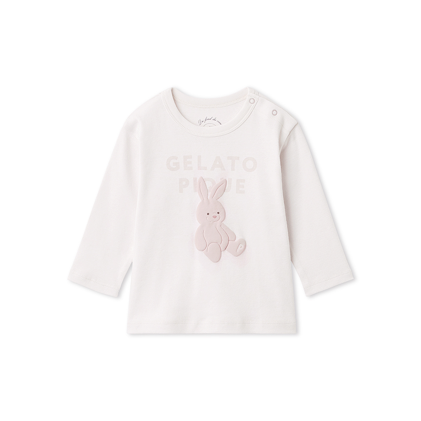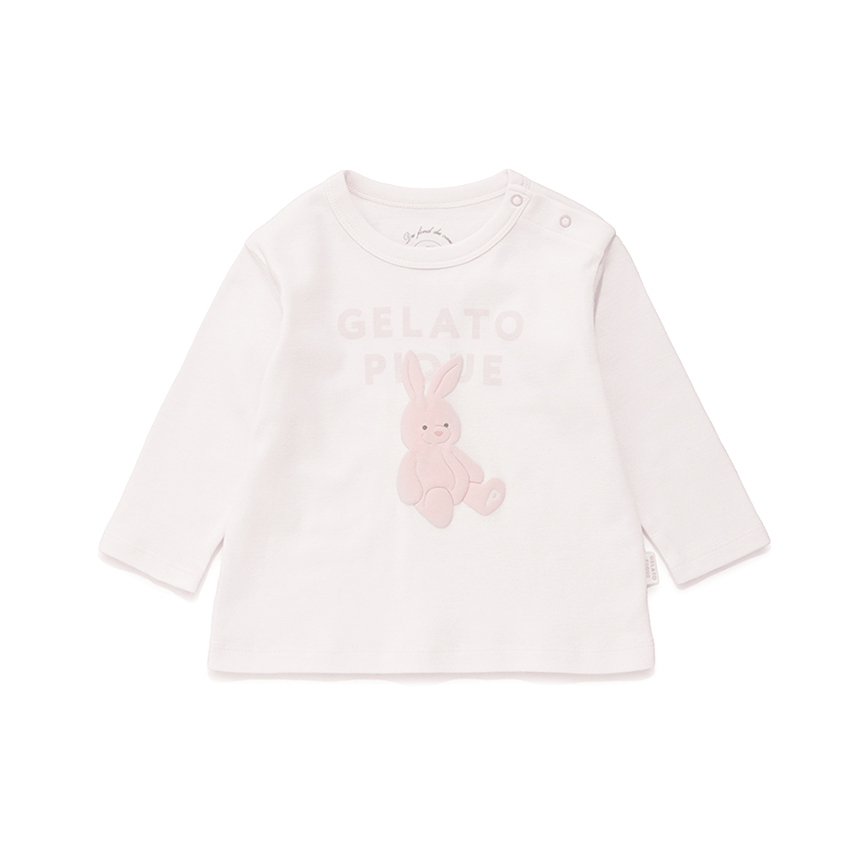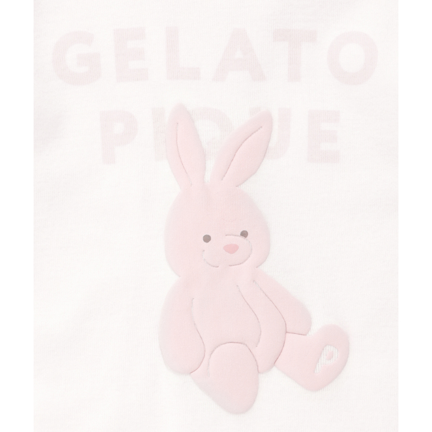 [Fabric]ボディにはコットン100%のカットソーを使用しています。[Design/Styling]淡く優しいカラーリングに、子どもたちが大好きなぬいぐるみ柄をあしらったカットソーシリーズにうさぎモチーフが新登場。ウサギとブランドロゴを組み合わせたBABYサイズのロングTシャツ。ぬいぐるみの絵柄はぷくっとした質感の発泡プリントで、足裏に<P>のイニシャルが入っています。BABYサイズは肩のスナップボタンで着脱しやすく仕上げました。ルームウェアとしてだけでなく、ワンマイルウェア、保育園着、幼稚園着としてもおすすめです。色はウサギ柄のライトピンク。同シリーズのロングパンツとのコーディネートが可能です。同じ柄でTシャツタイプのご用意もございます。