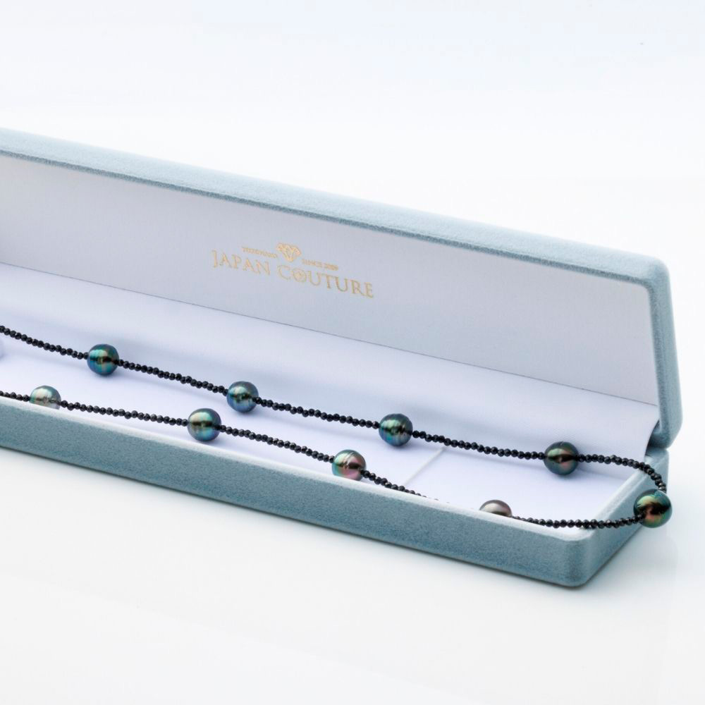 黒蝶真珠8mmのバロックパールを使用した、60cmロングネックレス。深みのあるブラックの艶と、ひと粒ごとに異なる自然なフォルムが、大人の装いに洗練された表情を添えます。縦のラインを強調するロング丈は、首元をすっきりと美しく演出。仕事や会食、お出かけなど幅広いシーンで活躍する、特別な一本です。