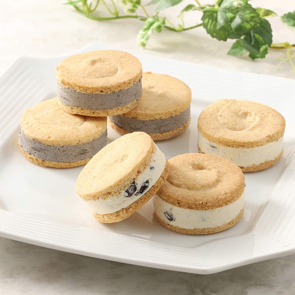 スイーツの町、札幌市清田区から。人気商品のレーズンサンドのプレーンとあんバターをセットにしました。