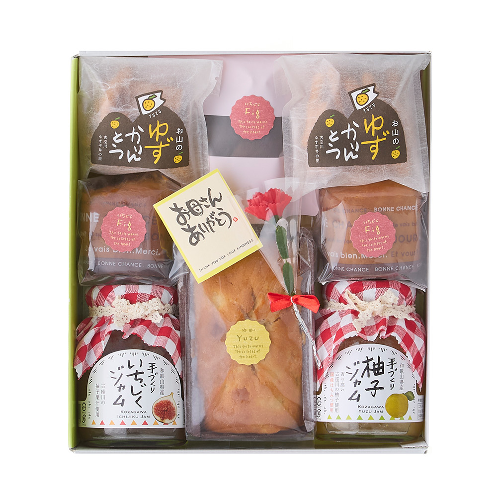 「古座川ゆず平井の里」は、紀伊半島の南に位置し、その古座川町の一番奥地、大塔山系の原生林が残る深山に、ゆずの里平井があります。山々に囲まれた平井の大自然がおいしいゆずを育てた、からだ思いゆずのお菓子といちじくを使ったジャムを詰め合わせたアソートギフトセットです。