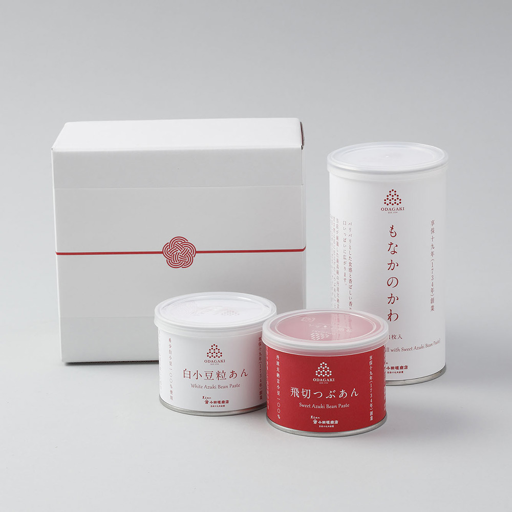 もなかのかわ(24枚入り12組)、飛切つぶあん(260g)、白小豆つぶあん(260g)×各1