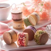 ラムレーズン1個、フランボワーズ1個、餡バター1個、ピスタチオ1個、苺1個、抹茶1個、栗1個、紫いも1個
