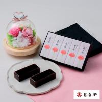 【母の日】ハートガラスドームプリザーブドピンク&<とらや>母の日パッケージ小形羊羹5本入