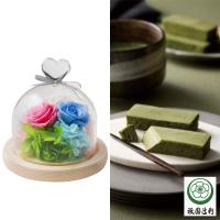 【母の日】ハートガラスドームプリザーブド ブルー・ピンク&祇園辻利監修 抹茶ガトーショコラ