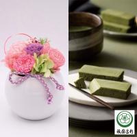 「和のぬくもりと、抹茶が香る至福の刻」和モダン・プリザーブドアレンジメント&<祇園辻利>抹茶ガトーショコラ。