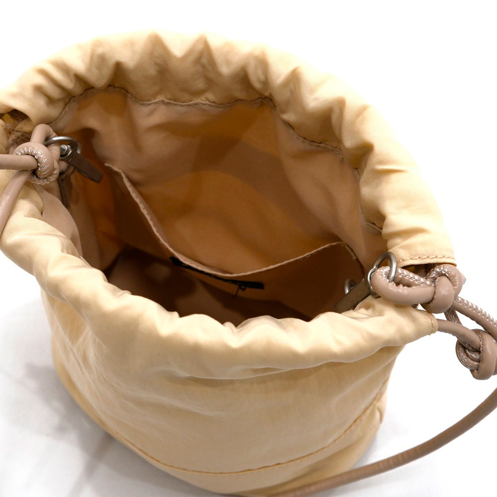 しわ加工を施したナイロン素材で、やわらかな表情と上品さを両立。軽量設計だから、持っていることを忘れるほどノンストレスで使えます。財布やスマートフォンなど、最低限の貴重品を身に付けるのにちょうどいいサイズ感。内装にはポケット1個付きで、小物の整理もしやすくなっています。ショルダーストラップは取り外し可能なので、ショルダーバッグとしても、巾着バッグとしても使える仕様。さっと持って出かけたい春のお散歩やお買い物、旅行のサブバッグにも活躍。シンプルで使いやすいデザインは、ギフトにもおすすめのアイテムです。